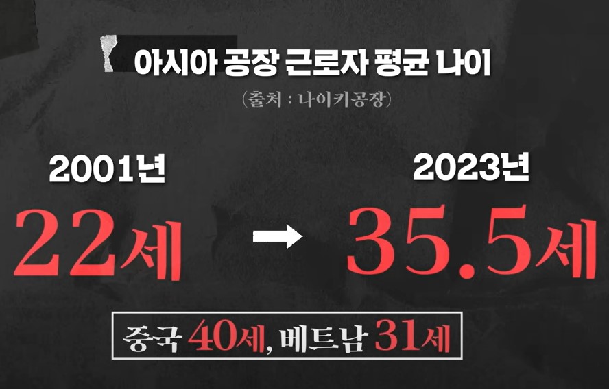 2001년 나이키 아시아 공장 근로자의 평균 나이는 22세, 지금은 35.5세로 늘었습니다. 나라별로 보면 중국 40세, 베트남 31세입니다. 약 20년 사이 평균 연령이 많게는 2배 가까이 늘었습니다. 기존 아시아 국가보다 인건비가 싼 미얀마, 에티오피아 등이 대안으로 떠오르지만 불안정한 정치적 상황과 숙련된 인력 부족이 발목을 잡습니다.