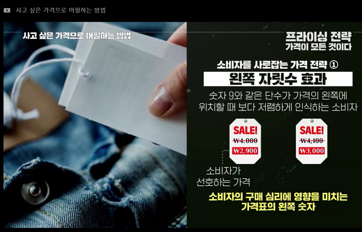 이번 포스팅은 사고 싶은 가격으로 어필하는 방법에 대해 다룹니다. 990원, 9,900원과 같이 숫자 9로 끝나는 가격이 매출에 미치는 영향부터 가격 전략을 통한 매출 향상까지 다양한 사례를 소개합니다. 왼쪽 자리수 원리와 소수 효과 등을 활용하여 고객의 마음에 가격 호르드를 낮추는 방법과 럭셔리 브랜드의 가격 전략에 대해서도 다룹니다.