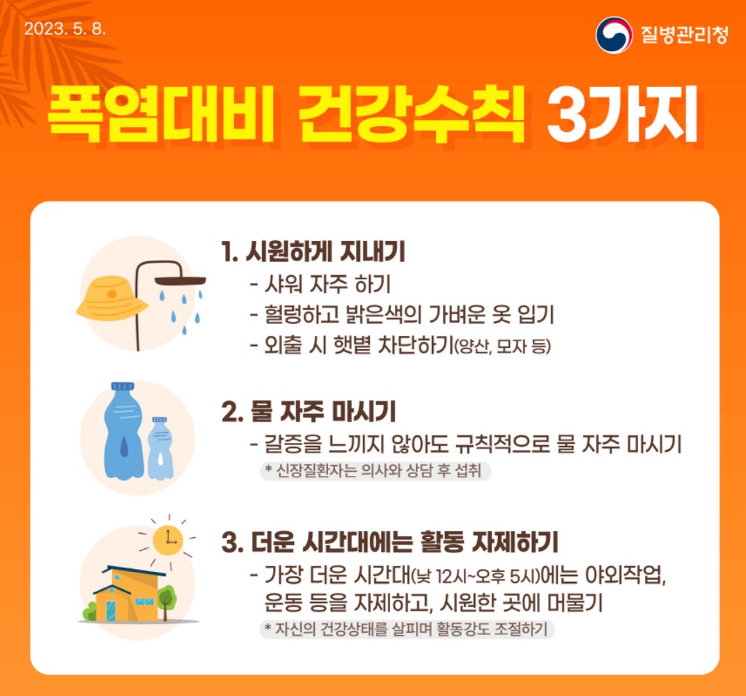 - 휴식: 무거운 활동을 피하고 더위를 피해 그늘에서 휴식